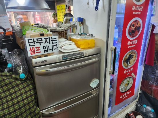 단무지는 탁상에 놓여 있는 걸 먹으면 되고